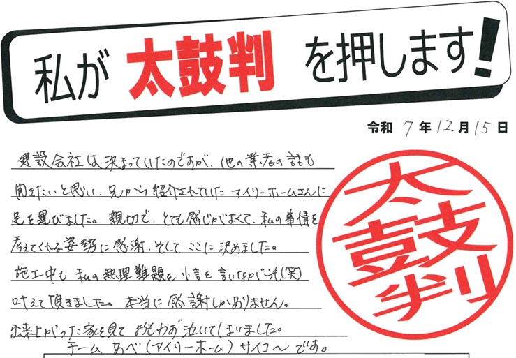 お施主様のご感想(レビュー)